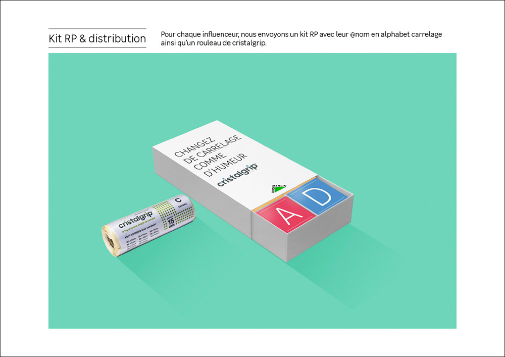 EXECUTION Déploiement d’une campagne de relations presse et d’influence avec l’envoi de box exclusives à des créateurs de contenu comprenant échantillons Cristal Grip et supports personnalisés. Production d’un film démonstratif valorisant la simplicité d’installation et organisation d’un événement au magasin Leroy Merlin Paris Beaubourg afin de présenter le produit en situation réelle. La stratégie associe innovation produit, activation digitale et visibilité SEO autour des requêtes carrelage sans colle, rénovation facile, DIY décoration et aménagement intérieur.